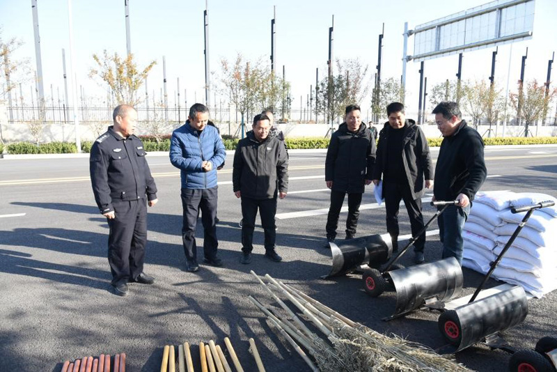演練前,肖隊(duì)長一行還檢查了掃雪除冰物資儲備情況。