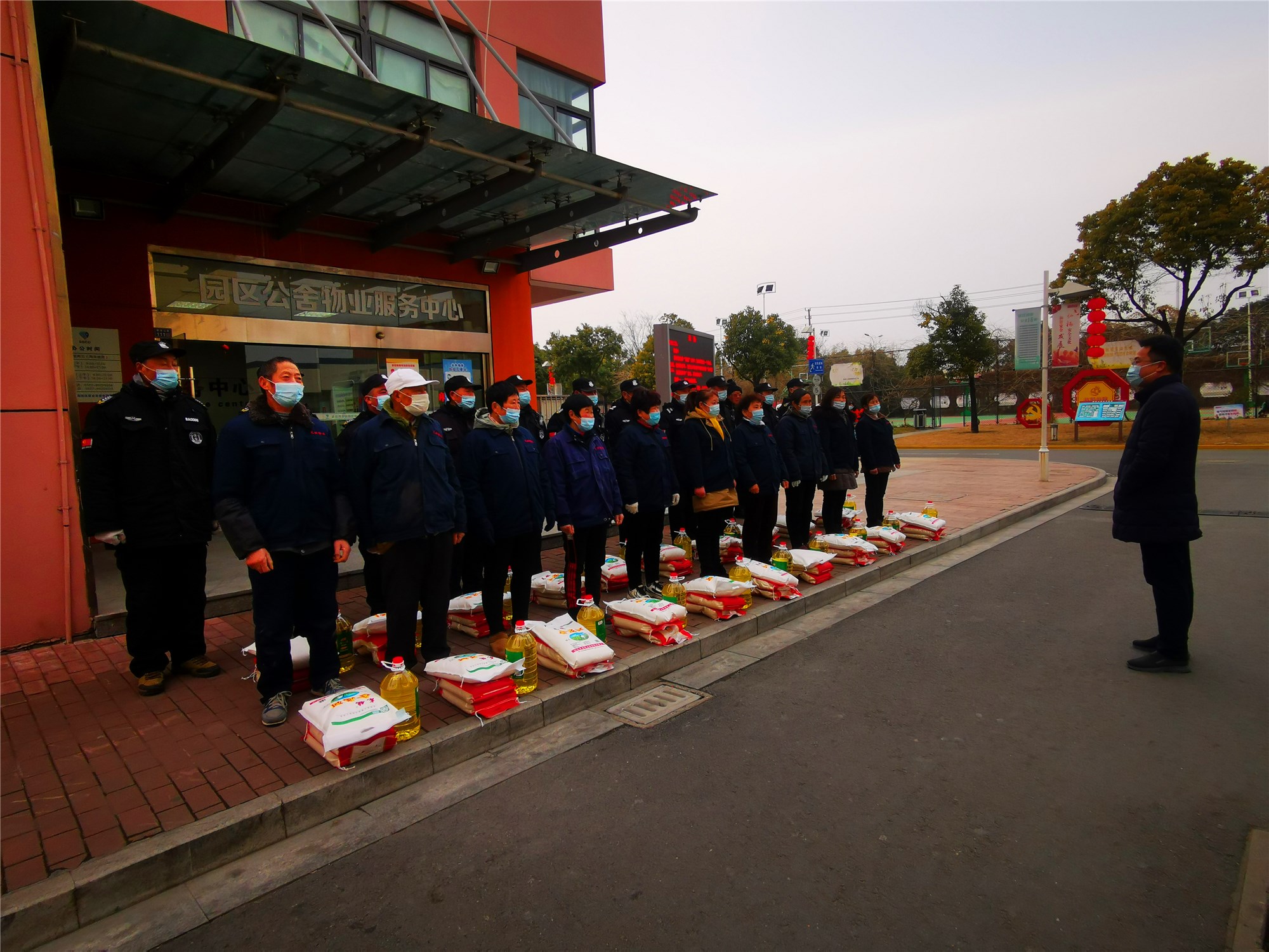 在新春佳節(jié)即將來(lái)臨之際,1月28日下午,公司副總經(jīng)理倪松慰問(wèn)了奮戰(zhàn)在一線保潔及保安人員,為他們送上了米、面粉、油等慰問(wèn)品。