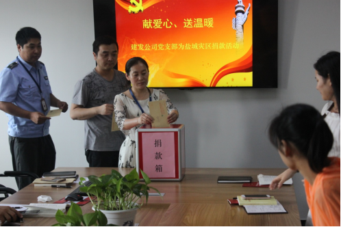 黨課結(jié)束后,黨支部組織開展“獻(xiàn)愛心、送溫暖,向鹽城災(zāi)區(qū)捐款活動(dòng)”,19名黨員、預(yù)備黨員和入黨積極分子極響應(yīng)號(hào)召,踴躍參與到捐款行列中,向受災(zāi)地區(qū)群眾奉獻(xiàn)自己的一份愛心,共獲得捐款2900元。同時(shí),黨支部也向公司全體職工發(fā)出了向?yàn)?zāi)區(qū)捐款的倡議,目前捐款工作正在進(jìn)行,捐款活動(dòng)結(jié)束后,獲得的款項(xiàng)將通過園區(qū)工委辦公室轉(zhuǎn)交鹽城災(zāi)區(qū)。