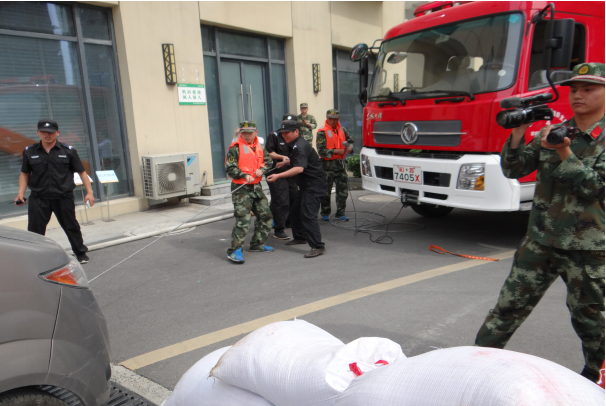 演練假設(shè)大雨來臨,汛情緊急。各隊(duì)員迅速各就各位,一部分隊(duì)員及時(shí)處理現(xiàn)場,設(shè)置警戒,快速疏散現(xiàn)場人員及車輛;另一部分隊(duì)員齊心協(xié)力,共同協(xié)作利用防汛工具緊急排險(xiǎn),有效排除現(xiàn)場積水。搶險(xiǎn)結(jié)束后,機(jī)械設(shè)備有序撤離現(xiàn)場。
